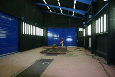 Freistrahlraum mit pneumatischem Strahlmitteltransport |